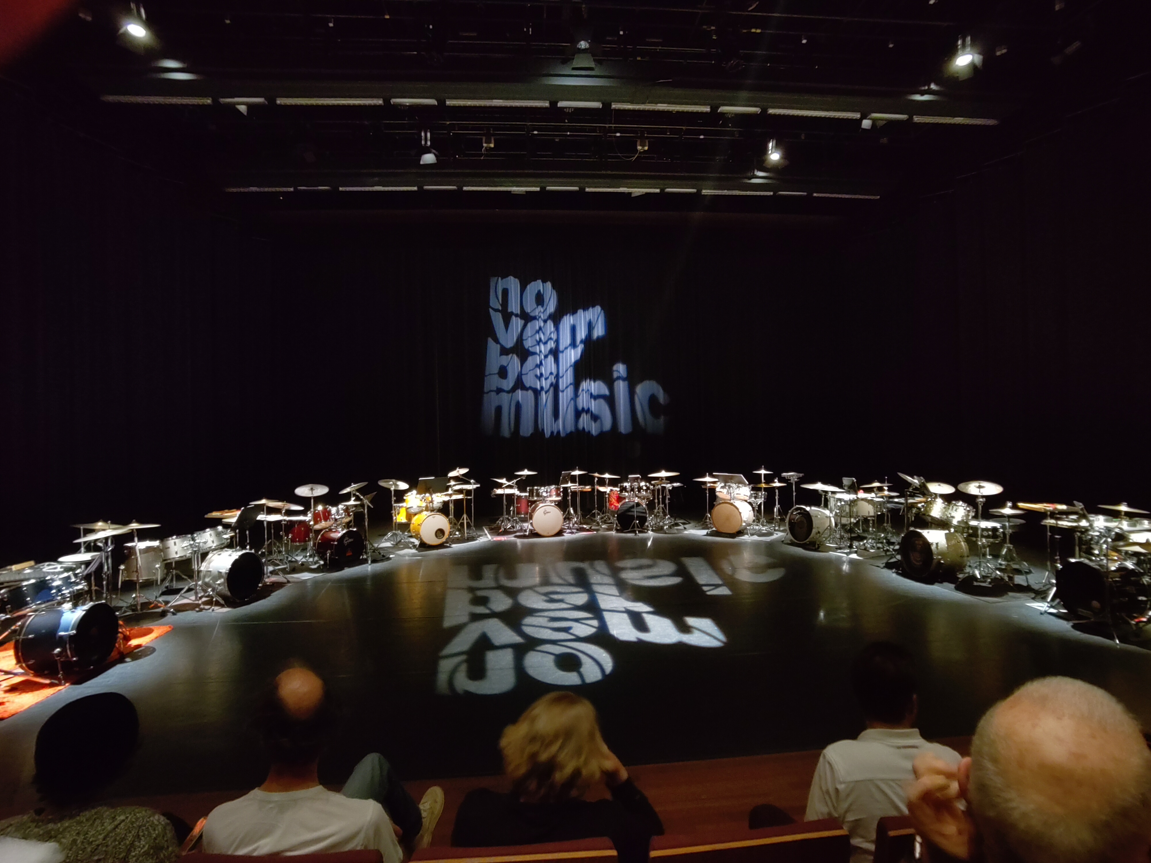 Dinsdagavond werd ik bijvoorbeeld blij van Streik van Enno Poppe (Ik sprak hem eerder). Tien drummers zaten achter hun hele gewone drumstellen: bassdrum, snare en hi-hat, twee toms en een staande tom, crashbekkens. Geen click-track die de maat aangaf, geen dirigent. Tien mensen (m/v/x) van divers pluimage, iemand die goed het middelpunt van een new wave band kon zijn, anderen pasten bij een jazz-orkestje, in een hardrock ensemble, of juist een bejaardenkoor.